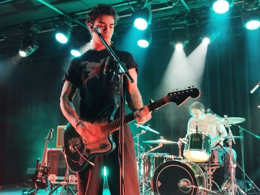 Diego Bracho, on vocals and guitar, smiling and self-assured, delivers chords in a tightly sequenced rhythm, supported by vocal lines rich in upper-mid tones and firmly grounded low registers. He combines ethereal, looping vocals with layers of distorted guitar.