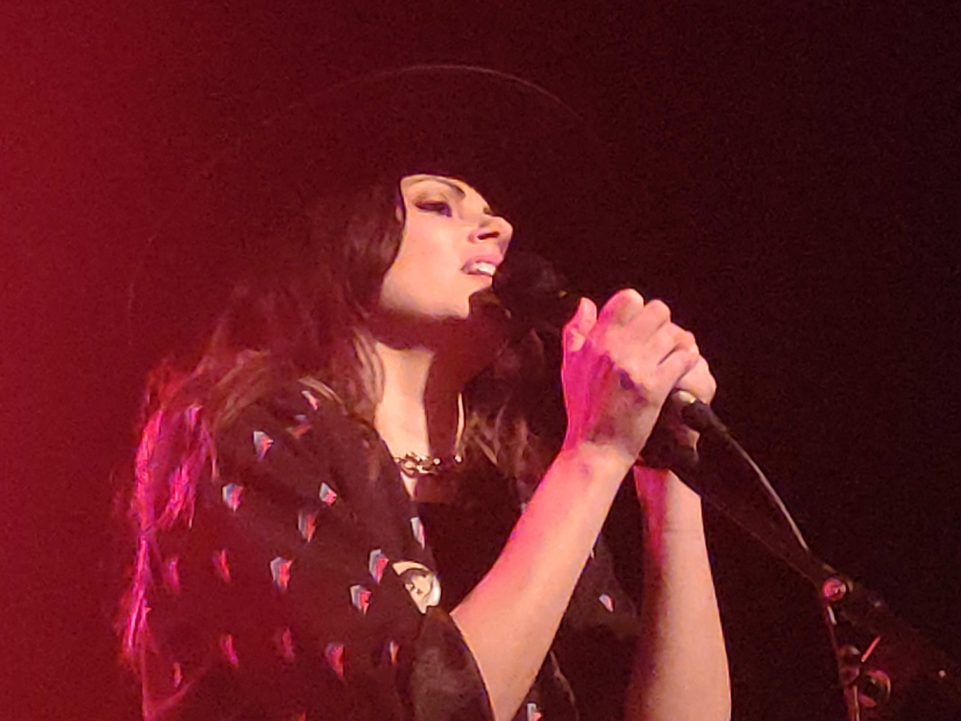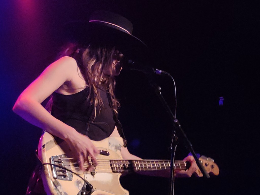 Tudo começou com um preâmbulo revolucionário veemente a prenunciar o que estava para vir. E se bem o pensaram, melhor o fizeram, porque a partir dai foi um non stop de energia contagiante muito bem regada a rock’n’roll alternativo, com laivos de folk rock, indie e blues. O núcleo original da banda é de qualidade rebuscada e com sensatez de linha mestra. Delila Paz canta como uma rebel, rebel angel, impregnada de sensualidade e altivez e navega confortável com uma excelente voz que nunca vacila, nem se refugia em portos de abrigo mais calmos. Está sempre lá no alto com timbres alternados numa amplitude vocal a lembrar muitas vezes Siouxie Sioux dos tempos áureos. Edgey Pires, de ascendência lusitana, toca guitarra como se estivesse o tempo todo a levar choques elétricos. A guitarra grita que se farta, principalmente a Telecaster, em escalas de blues alternativo e riffs de guitarra frenéticos, muito bem esgalhados e pertinentes. Hendrix ficaria ali até ao fim. Não se cansa nunca de puxar pela sala, que correspondeu ao pedido. A bateria cavalga por trás, forte, marcante e acima de tudo, possante. Hard Times, Wated Man, Life, Liberty and Pursuit the Indian Blood não faltaram na ementa e o concerto fluiu bem entre um set-line bem conseguido.