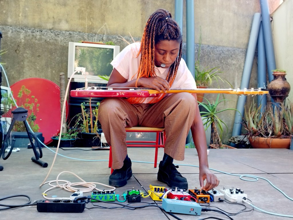 Next was Farida Amadou, on the backyard stage, using her bass, pedals, drum sticks, mallets, to create for expressing something that, in a way, is lost on the listener. Why? It is a very personal use and interpretation of what, from this side, seem to be ways of addressing feelings, emotions, world events.background. If that is so, only Farida can answer.