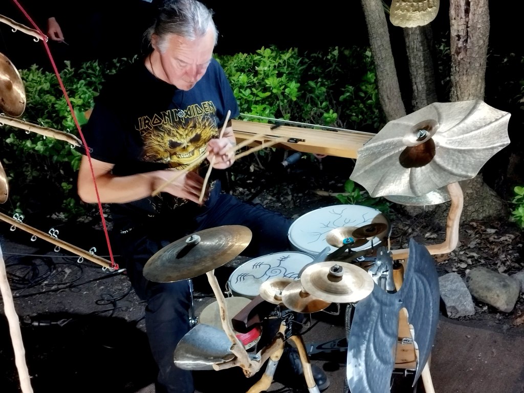 At a point I opened my eyes and though four drumsticks? Two at a hand? Nope, turns out it were five drumsticks. Donât ask me how. Steve holds the answer. I can tell it each time Steve does something different and there is no point going to see him thinking it may be this or that or those. Oh, right, back to the transcendence, which is where I was when Steveâs performance ended. It was shamanic, otherworldly. A Summerâs night dream and elation.