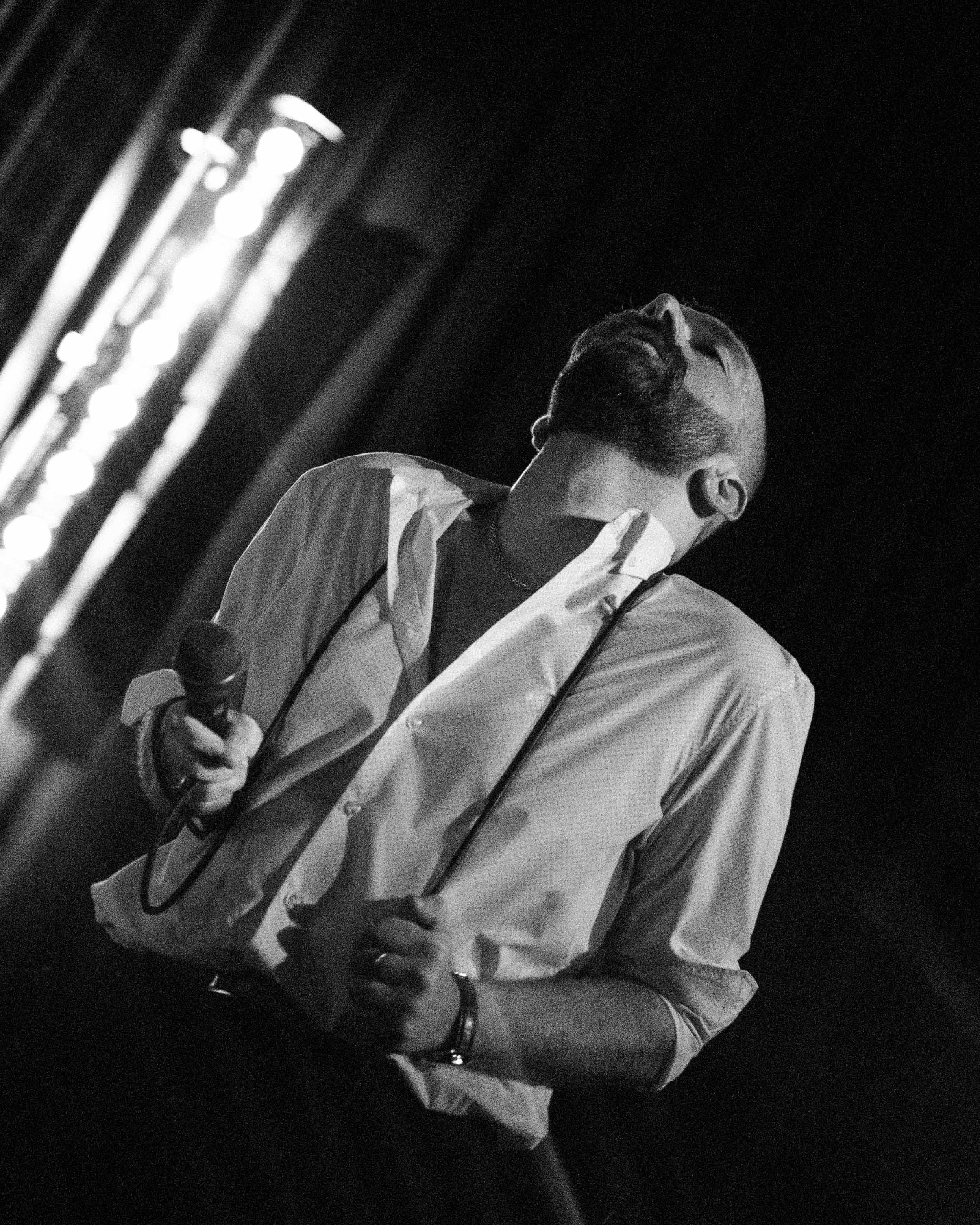 He carries an intrinsic ability to command attention: monochord vocal delivery, the sinuous movement of his body to the measured pulse of an electronic post-punk, hypnotic, corrosive, built on pre-recorded loops of guitar, drums, bass, keyboards, and samplers. He drifts across the stage, almost unsteady, faintly lascivious, but the message lands. That seems to be what drives them, and they achieve it with precision.